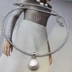Ожерелье из бесцветного циркона, подвески из барочного жемчуга и цирконов.