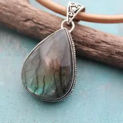 Подвеска из полупрозрачного зеленого лабрадора, серебра.