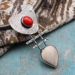Подвеска из красного коралла, песочной яшмы, посеребрение 925 пробы.