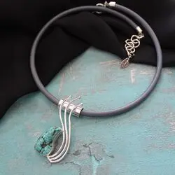 Колье из бирюзы (имитация из турквенита), каучука, серебра.