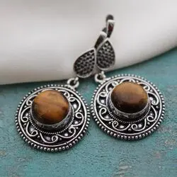 Серьги из натурального тигрового глаза, посеребрение 925.