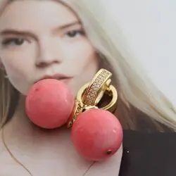Серьги из натурального розового коралла класса А+++ (исключительного качества), серебряной позолоченной 24К фурнитуры с рбесцветными микроцирконами.