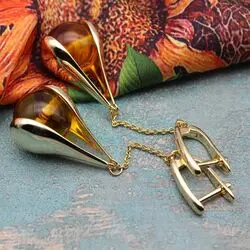Серьги из медового балтийского янтаря (г. Калининград), позолоченного 24К сплава.