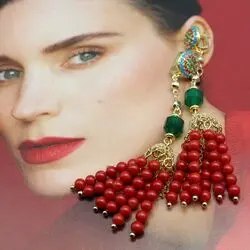 Эффектные, необычные, невероятно стильные серьги-кисти с натуральным красным кораллом и зеленым хризопразом!