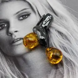 Серьги из балтийского янтаря (каленого), посеребренного оксидированного сплава, цирконов.