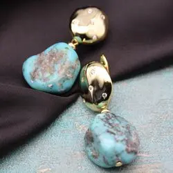 Серьги из крупной натуральной бирюзы в породе (м-ие "Спящая красавица, штат Аризона, США), позолоченной 24К фурнитуры.