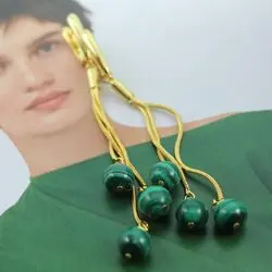 Серьги с натуральным малахитом (р-ка Конго), позолоченной 24К фурнитуры.