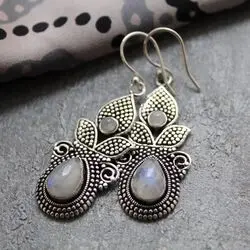 Серьги из полупрозрачного лунного камня, посеребрение 925.