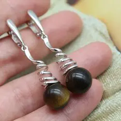 Серьги из натурального тигрового глаза, посеребренной фурнитуры 925.