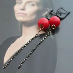 Серьги из натурального красного коралла класса 3А+, черной шпинели, серебра 925 с родированием, позолоченной 24К фурнитуры.