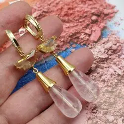 Сеьги из натурального граненого розового кварца (Шри-Ланка), лимонных кристаллов, позолоченной 24К фурнитуры.