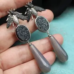 Современная классика - удлиненные формы капли благородного серого оттенка и современные элементы необычного дизайна в виде мушек, вставки с серебристой друзой выглядят очень эффектно и заметно!