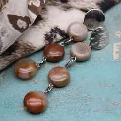 Серьги из природного агата, посеребренной родированной фурнитуры.