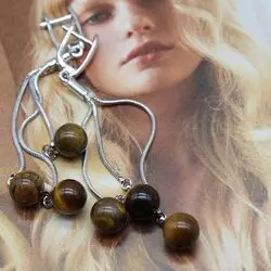 Серьги из натурального тигрового глаза, посеребренной фурнитуры 925.