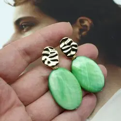 Крупные серьги из зеленого перламутра, позолота 24К.