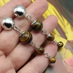 Серьги из натурального тигрового глаза, посеребренной фурнитуры 925.
