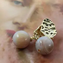 Серьги из природного серо-розового агата ботсвана, позолота 24К.