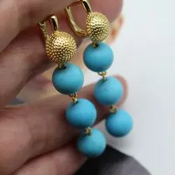 Серьги из голубой бирюзы (стабилизированной), позолоченной латуни 24К.