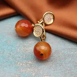 Серьги из граненого сердолика, позолота 24К с микроцирконами.