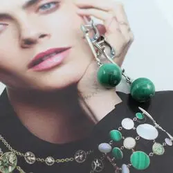 Серьги с натуральным малахитом (р-ка Конго), мельхиора с посеребребрением (фурнитура из исторической коллекции).
