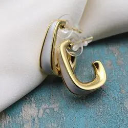 Серьги из позолоченного 24К родированного сплава, белой эмали (р-ка Корея). Очень качественное, стойкое покрытие!