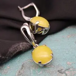 Серьги из желтого (прессованного) балтийского янтаря (г.Калининград), мельхиора.