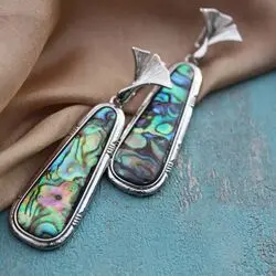 Серьги из перламутра гелиотиса, посеребренного родированного сплава, серебра.