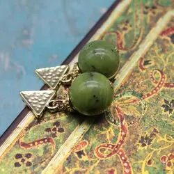 Невероятно эффектное, несмотря на не крупные размеры украшение! Очень красивый, приятный зеленый оттенок природного камня гармонично сочетается с золотой фурнитурой!