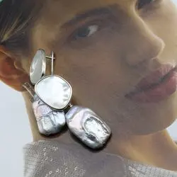 Серьги из натурального перламутра, серого барочного жемчуга, серебра 925 с родиевым покрытием.