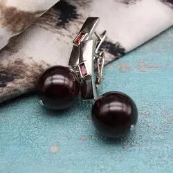 Серьги из натурального граната, серебряных родированных швенз с красными цирконами.