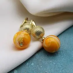 Серьги из желтого перламутра, позолоченной 24К фурнитуры (р-ка Ю. Корея).