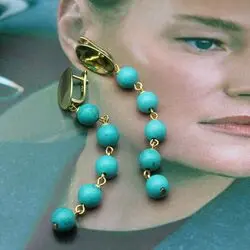 Серьги из зеленой бирюзы (стабилизированной), позолоченной латуни 24К.