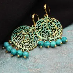 Серьги из бирюзы (тонированный турквенит), позолоты, бирюзовой патины.