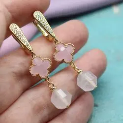 Серьги из натурального розового кварца (Шри-Ланка), позолоченной фурнитуры с позолотой 24К с цирконами.