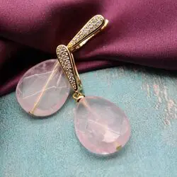 Серьги из крупного граненого розового кварца (Шри-Ланка), цирконов, позолоченной 24 К фурнитуры.