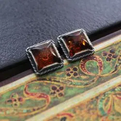 Серьги гвоздики из балтийского янтаря (г. Калининград), мельхиора.