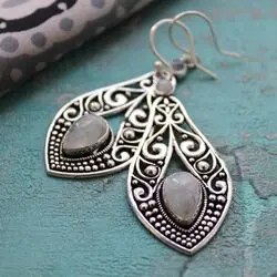 Серьги из полупрозрачного лунного камня, посеребрение 925.