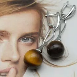 Элегантные, в графичном тренде серьги с шариками из тигрового глаза!