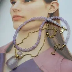 Сет состоит из двух украшений - бус из аметиста и колье из цепочки и флакончика для любимых духов из натурального аметиста.
