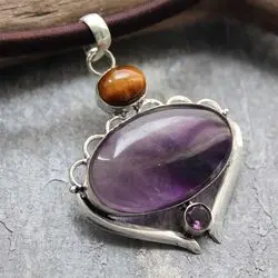 Подвеска из флюорита, аметиста, тигрового глаза, посеребрение 925