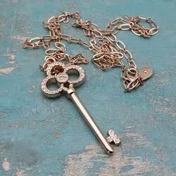 Колье состоит из цепочки с подвеской в виде ключика, инкрустированного стразами.