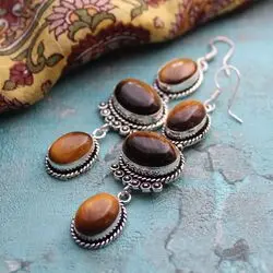 Серьги из тигрового глаза, посеребрение 925 пробы.