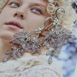 Неординарные, невероятно привлекательные серьги грозди из нежно-лилового аметиста. Конструкция серег подвижная, хороши как соло, так и в дуэтах с браслетами или колье!