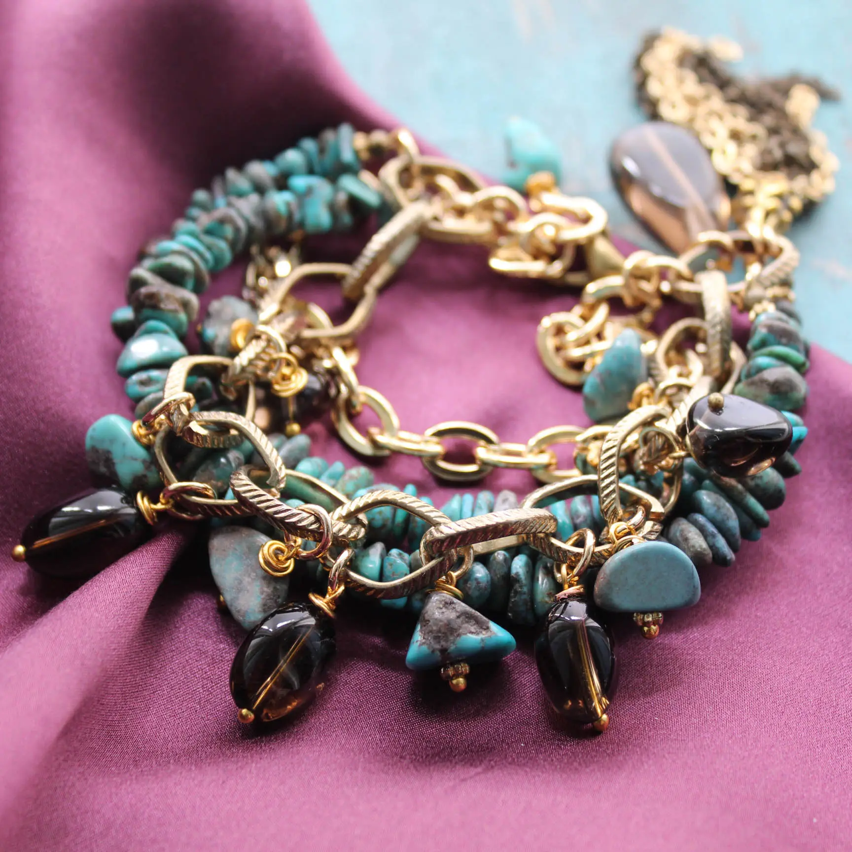 Браслет из натуральной бирюзы (шт. Аризона, США), раухтопаза (дымчатого кварца), латунной фурнитуры ручной работы (Италия).