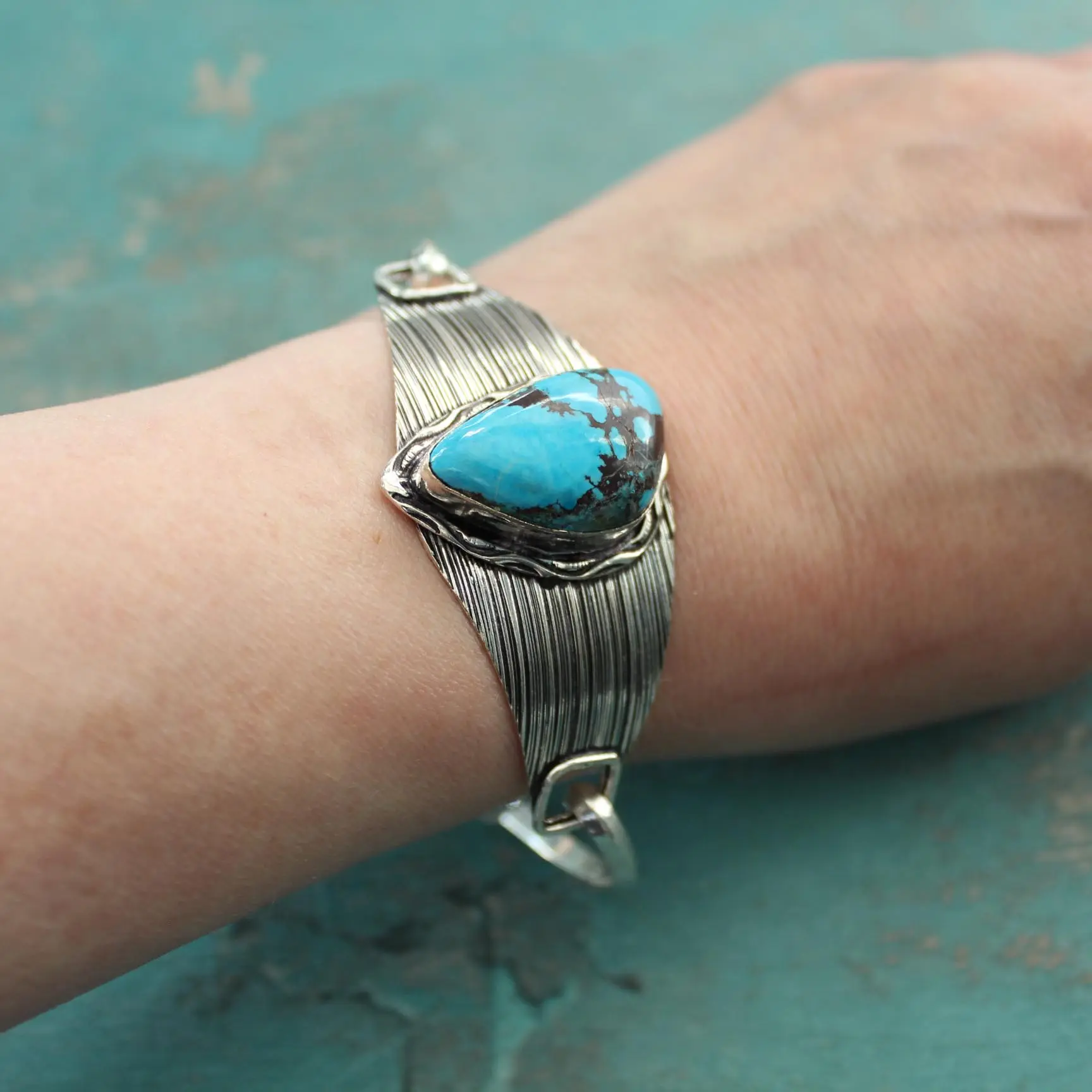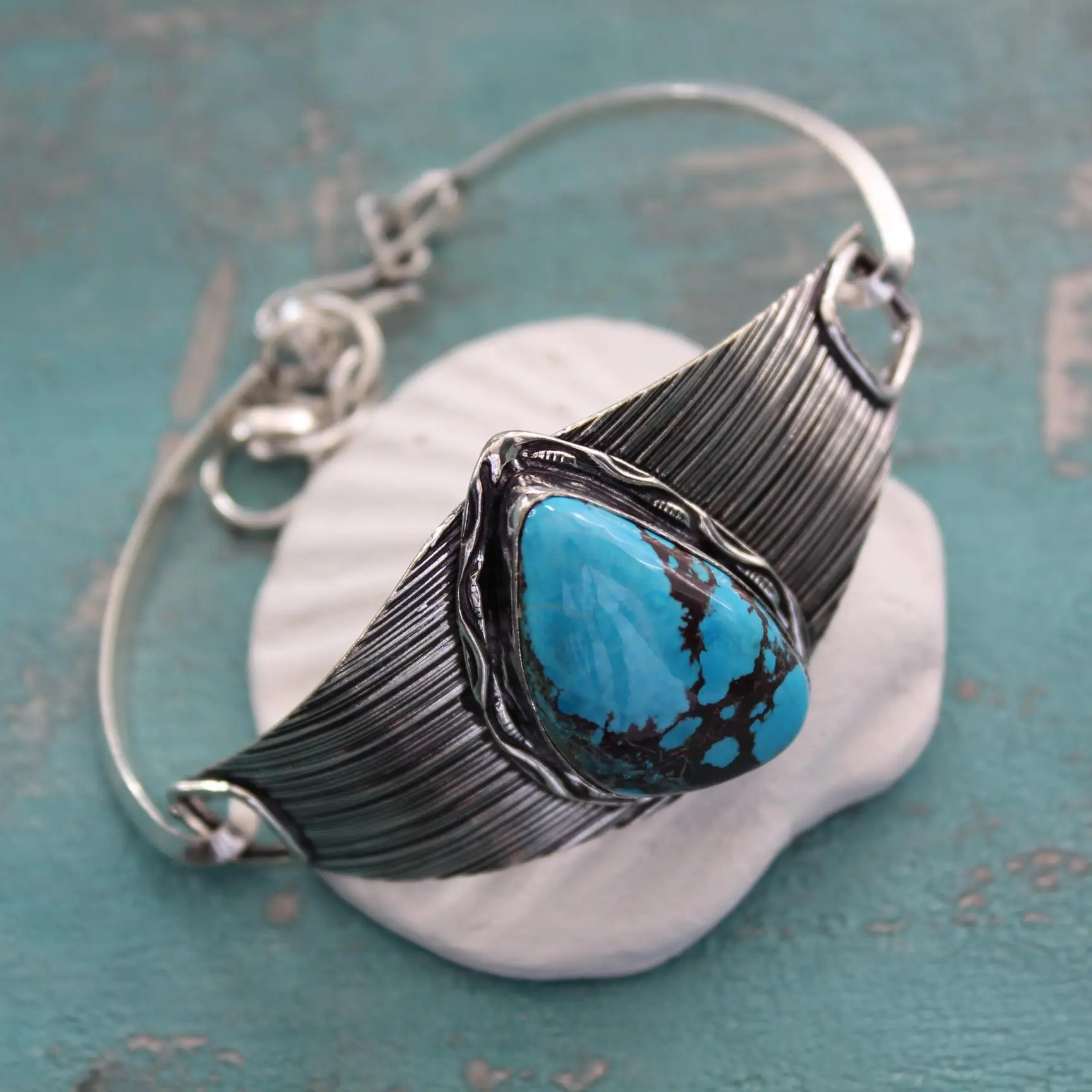 Браслет бангл из натуральной бирюзы, посеребрение 925 пробы, серебро 925, чернение.