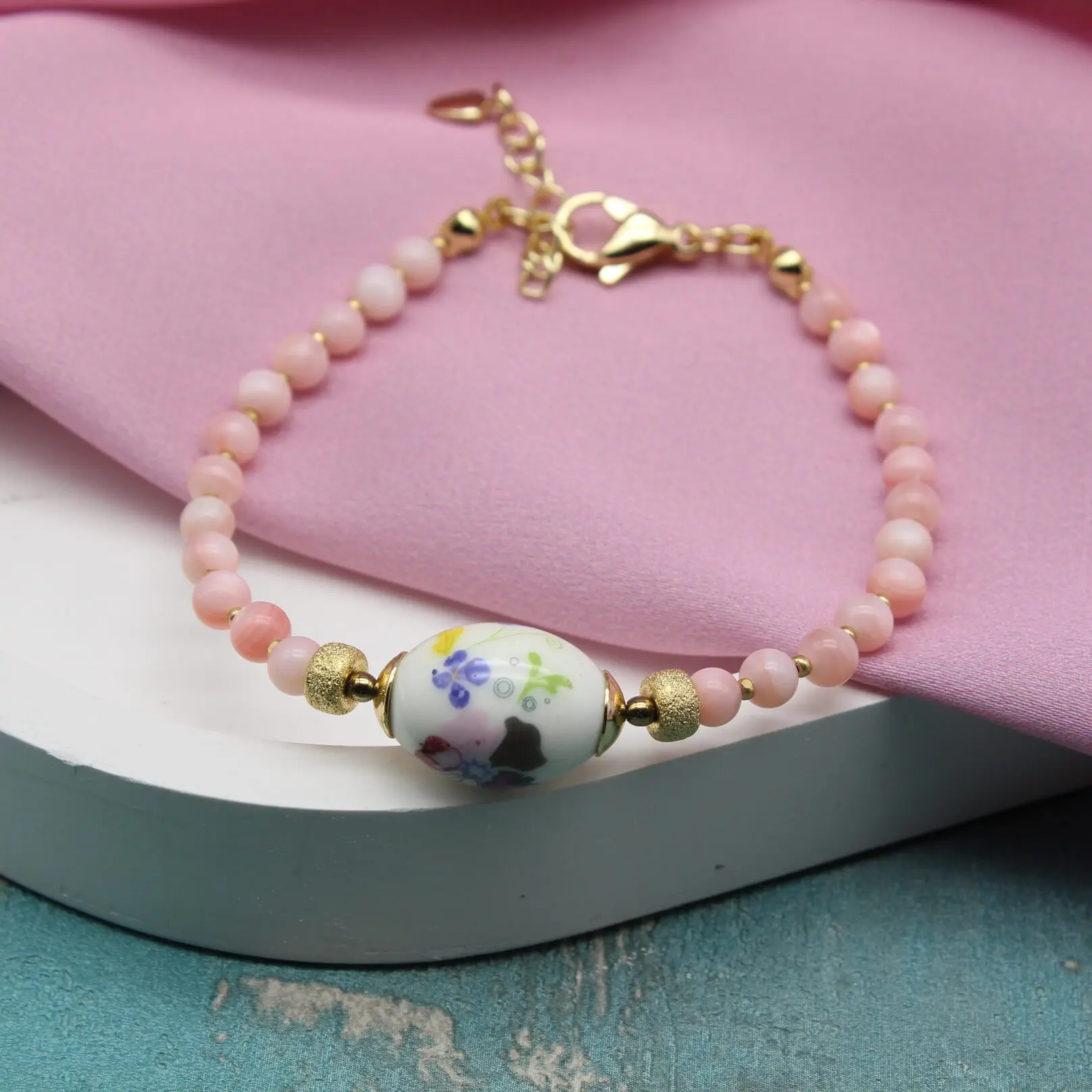 Размер перламутра 4 мм, бусины из фарфора "Мэйсон" 12*16 мм.