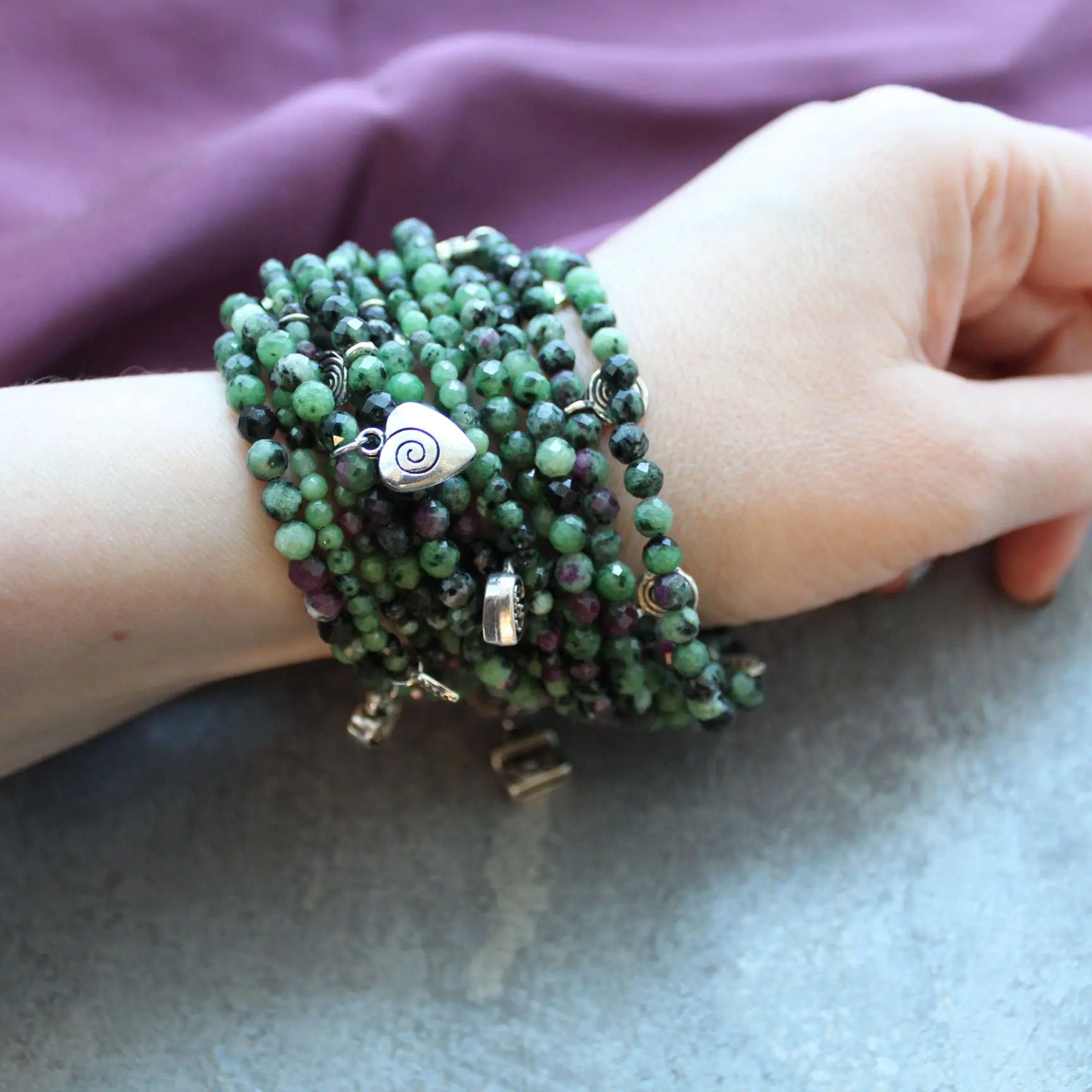 Браслет состоит из 13 слоев, украшенных маленькими серебряными подвесками с самыми древними символами лабиринта, бесконечности.