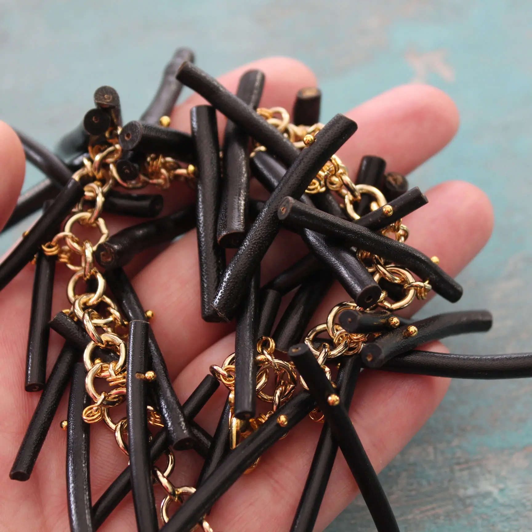 Браслет из натурального черного коралла, позолоченной 24 К фурнитуры с родированным покрытием, стали.