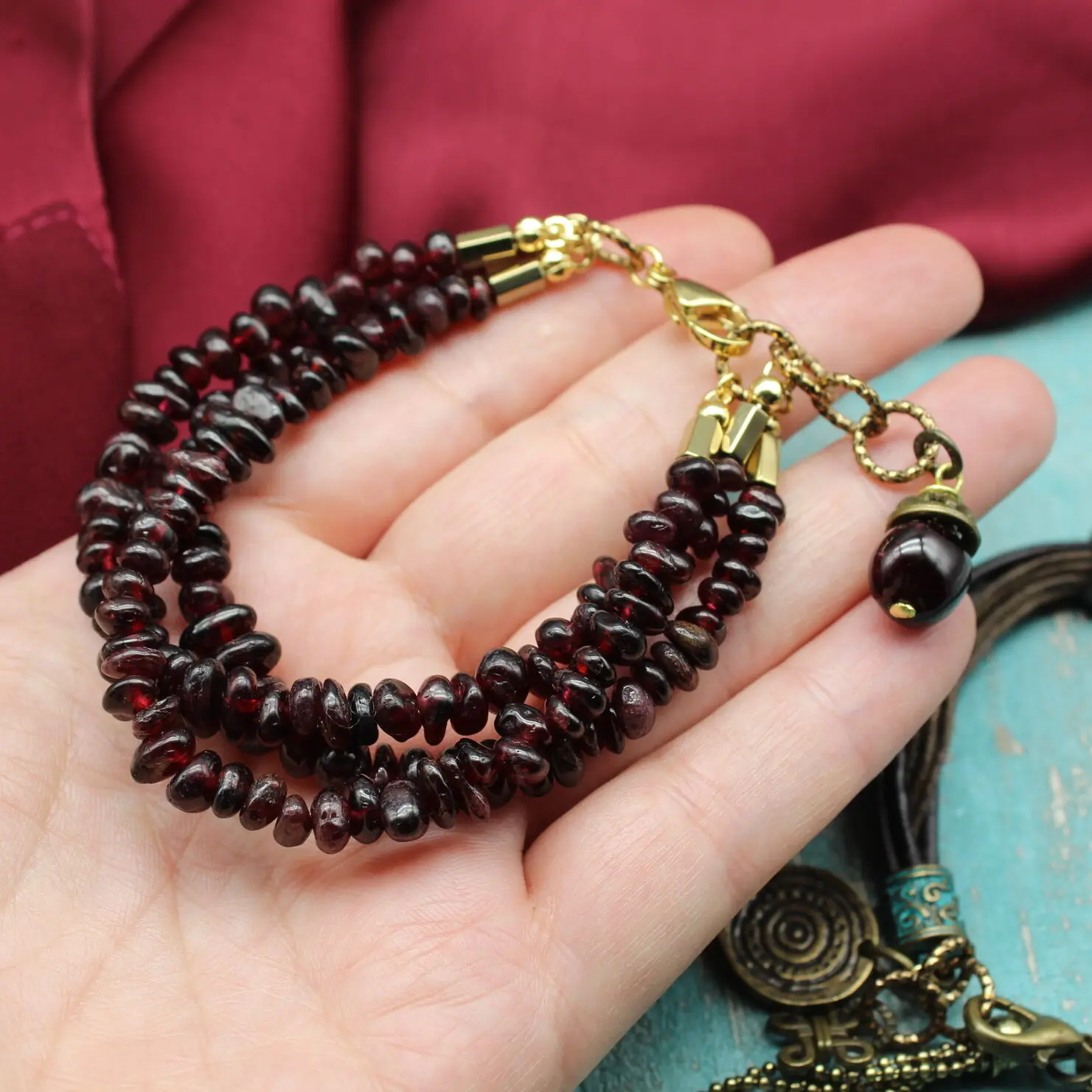 Один браслет из натурального граната, второй из кожи, хлопка, бронзы.