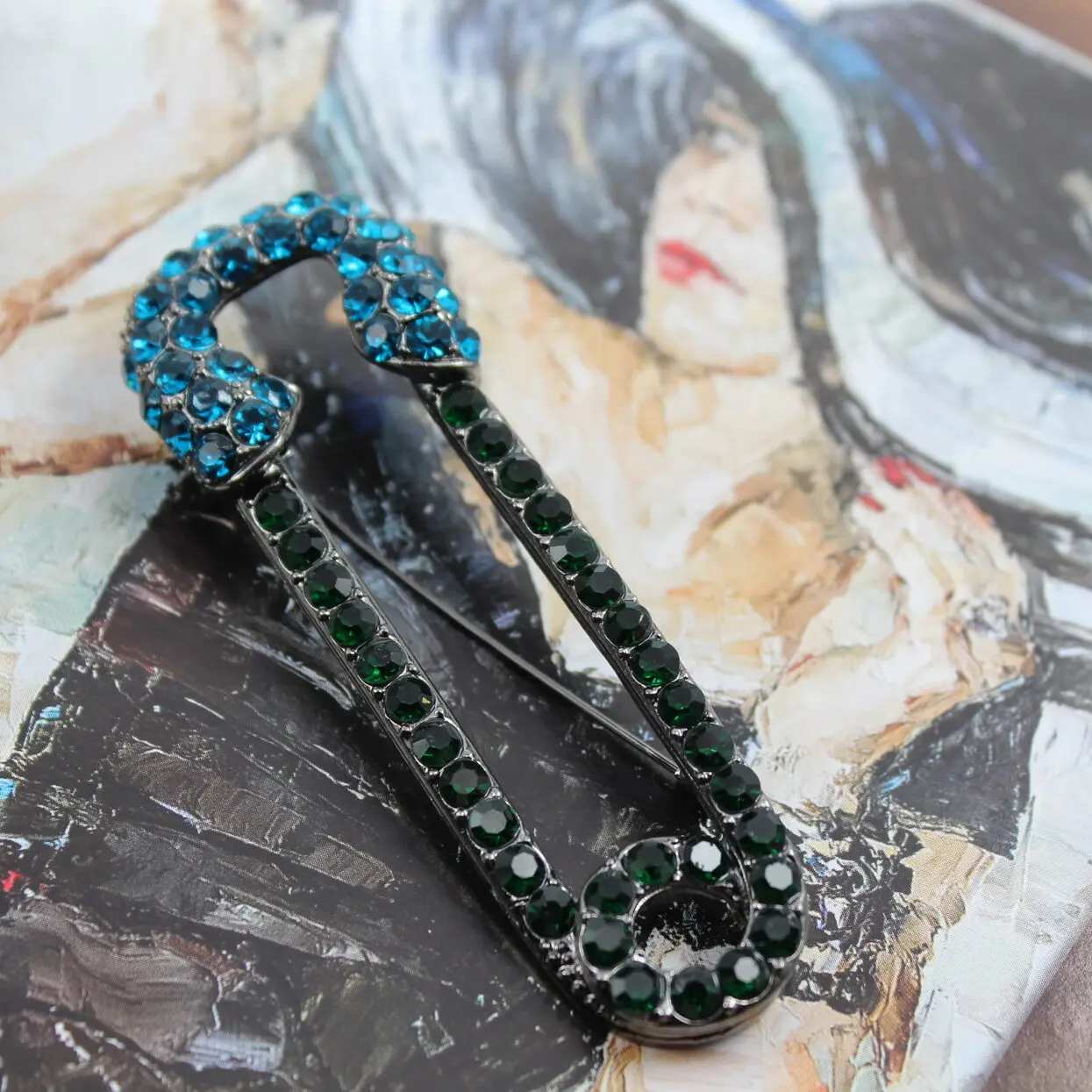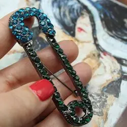 Брошь булавка из металлического сплава, разноцветных кристаллов.